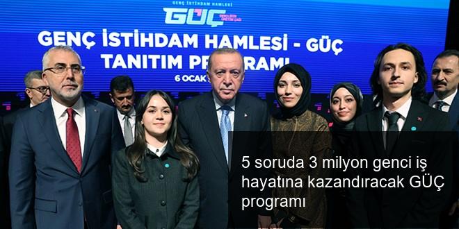 Gençlerin staj imkanıyla mesleksel deneyim kazanmasını, iş ömrünü tanımasını, istihdama kolay iştirakini ve iş gücü piyasasında kalıcı olmasını amaçlayan GÜÇ Programı’nın tanıtımı, 6 Ocak’ta Cumhurbaşkanı Recep Tayyip Erdoğan’ın iştirakiyle yapıldı.