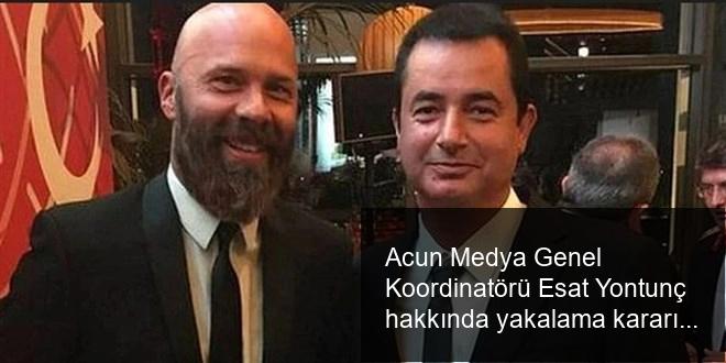 TV programcısı Acun Ilıcalı’nın yakın arkadaşı ve Acun Medya’daki iş ortağı Esat Yontunç hakkında yakalama kararı çıkarıldı. Sabah’ın haberine nazaran Yontunç’un, Survivor programının çekimleri kapsamında Dominik Cumhuriyeti’nde bulunduğu öğrenildi. Hakkında çıkarılan yakalama kararının hangi soruşturma evrakıyla ilgili olduğu konusunda ise şu ana kadar resmi bir açıklama yapılmadı.