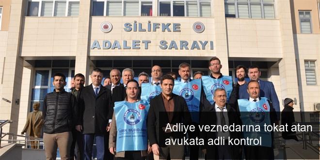 Silifke Adliyesinde keşif harcı ve masraf avansı için vezneye giden avukat Y.K. burada tartıştığı veznedar Serdar Kaya’ya belge fırlatıp tokat attığı teziyle gözaltına alındı.