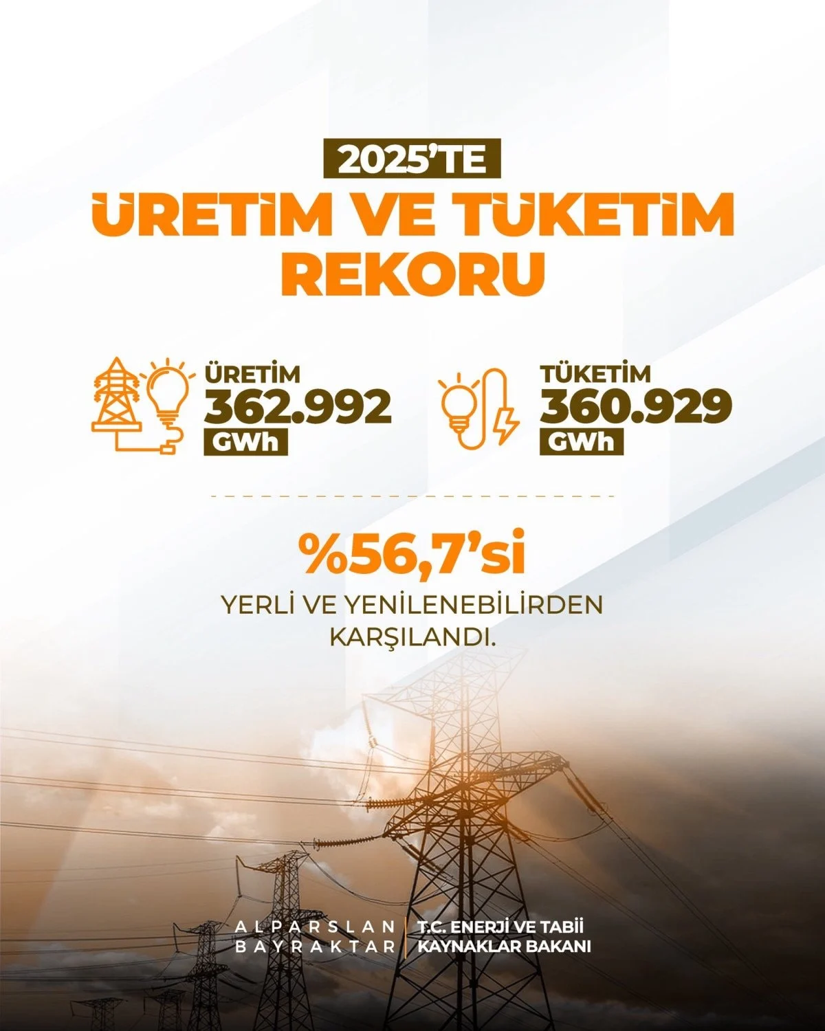 “2025 yılında 362 bin 992 gigavatsaatlik elektrik üretimiyle tarihi bir doruğa ulaşarak rekor kırdık.