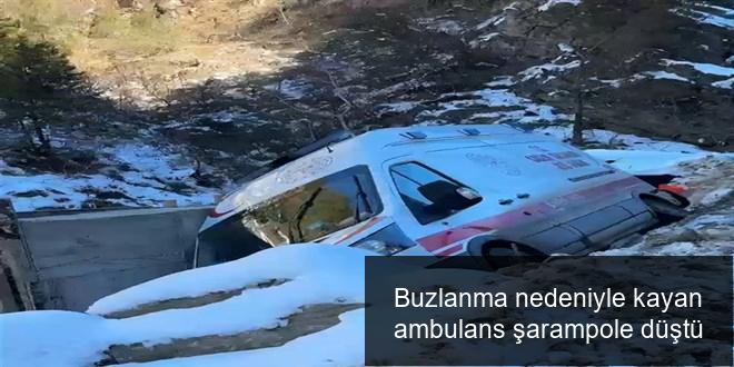 Adana’nın Feke ilçesinde hasta almaya giden ambulans, buzlanma nedeniyle kayarak şarampole düştü. Kazada ölen ya da yaralanan olmadı.