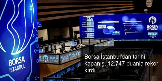 Borsa İstanbul’da BIST 100 endeksi, günü yüzde 0,63 paha kazanarak 12.747,88 puanla rekor düzeyden tamamladı.