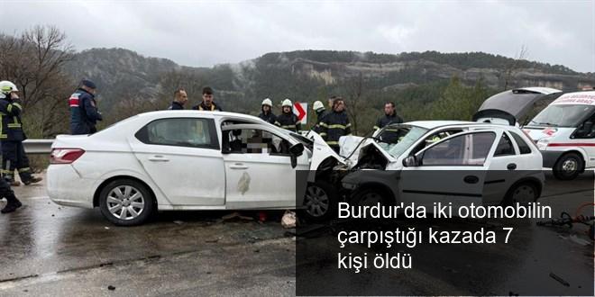 Burdur Valiliğinden yapılan açıklamada, Ağlasun-Antalya-Isparta kara yolunun Isparta istikameti Aşağı Yumrutaş mevkisinde iki arabanın karıştığı sıkışmalı trafik kazası sonucu 7 kişinin hayatının kaybettiği bildirildi.