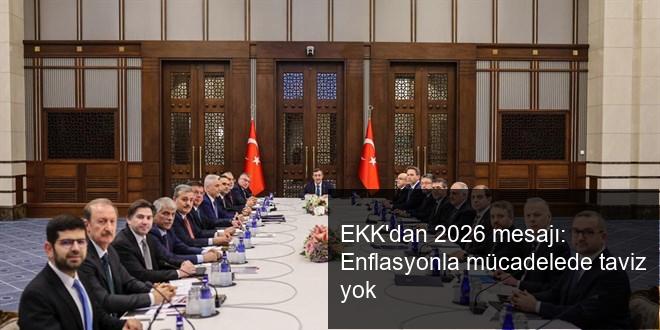 Ekonomi Koordinasyon Kurulu (EKK), 2026 yılının birinci toplantısının akabinde yaptığı açıklamada dezenflasyon sürecinin devam ettiğini belirterek “2026 yılında para ve maliye siyasetlerini eşgüdüm içinde uygulayarak enflasyonla çabayı kararlılıkla sürdüreceğiz” değerlendirmesinde bulundu.