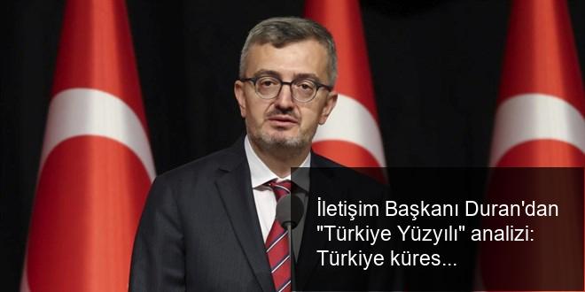 İletişim Başkanı Duran, Türkiye’nin uluslararası alanda, diplomasi, ticaret, güç, eğitim, insani yardım, savunma, lojistik-ulaştırma üzere alanlarda artan rolünü değerlendirdiği “Küresel Sistemik Dönüşümün Eşiğinde Türkiye” başlıklı yazısını kaleme aldı.