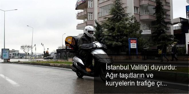 Valilikten yapılan açıklamada, “İlimizde tesirli olan kar yağışı nedeniyle 19.01.2026 Pazartesi günü saat 10.00’dan itibaren ağır taşıtların ve kuryelerin trafiğe çıkışı, 2. bir talimata kadar yasaklanmıştır” denildi.