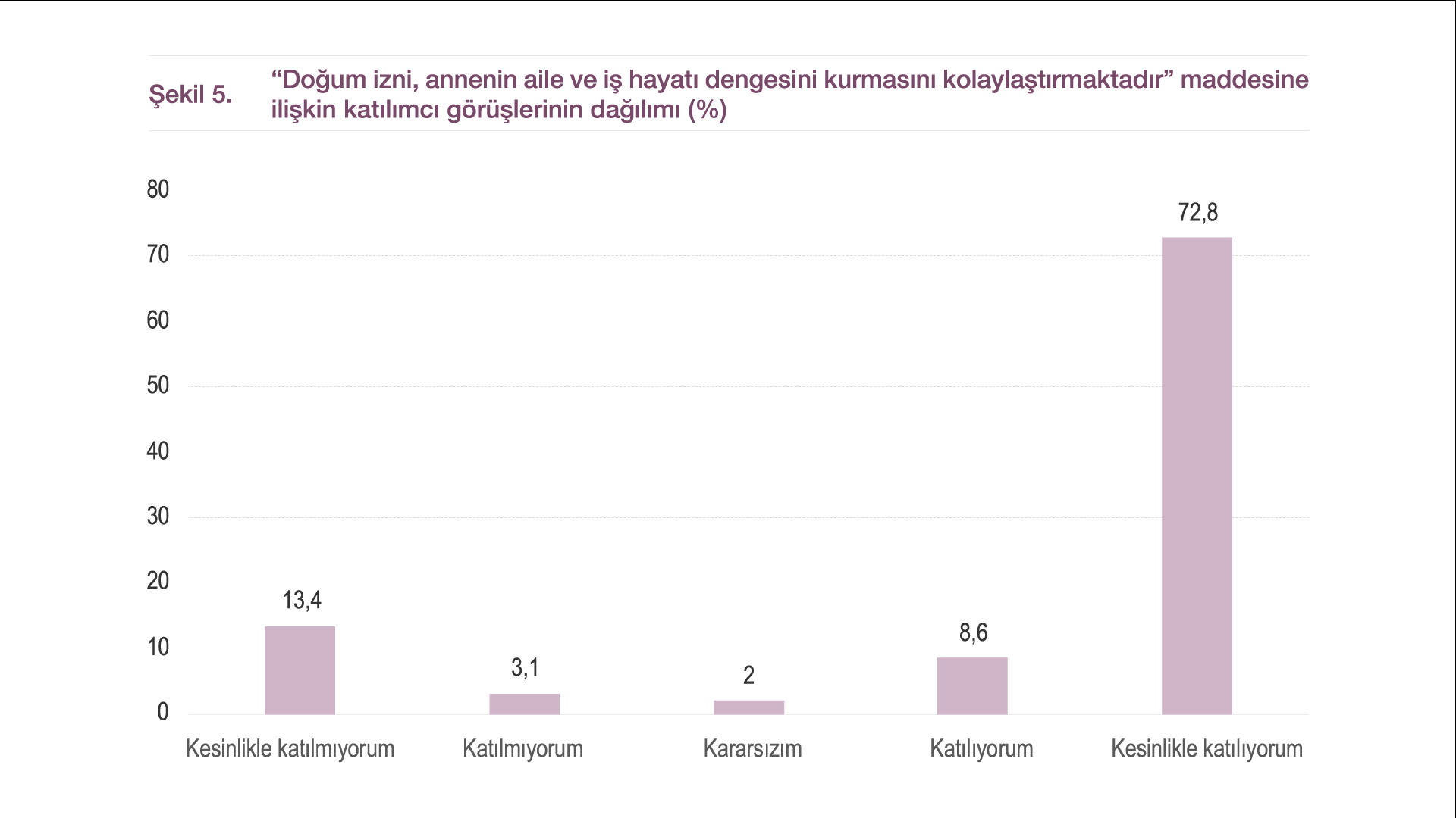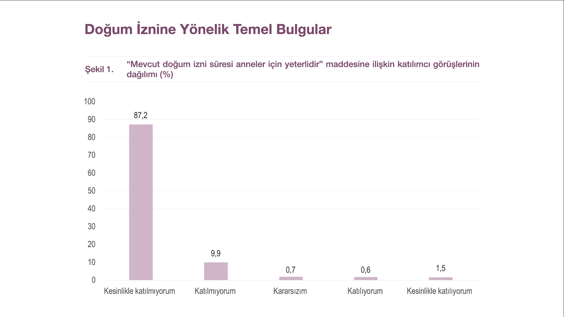 Araştırma raporunda, analık haklarının mevcut haliyle bayanları ya çalışma hayatından uzaklaşmaya ya da ağır bedeller ödeyerek devam etmeye zorladığı vurgulandı. İştirakçiler, anne olmanın mali kayıp, meslek gerilemesi ve mesleksel görünmezlik ile eş manalı hale gelmemesi gerektiğini lisana getirdi.