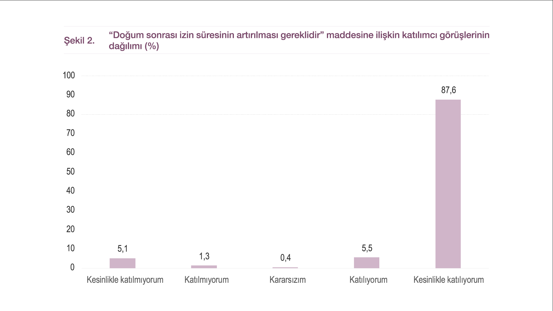 - Kadınların %93,1’i, doğum sonrası müsaade mühletinin kesinlikle artırılması gerektiğini belirtti.