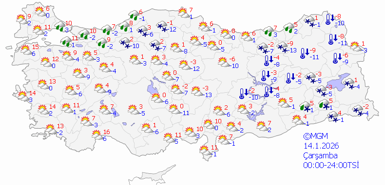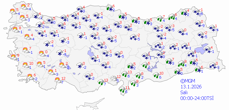 Şu anda Karadeniz’in iç kesitlerinde ve Doğu Anadolu’da kar kalınlıklarının yüksek olduğunu bildiren Çelik, kar yağışının yarın bilhassa Doğu ve Güneydoğu Anadolu’nun doğusunda tesirli olacağını, daha sonra da yurdu terk edeceğini anlattı.