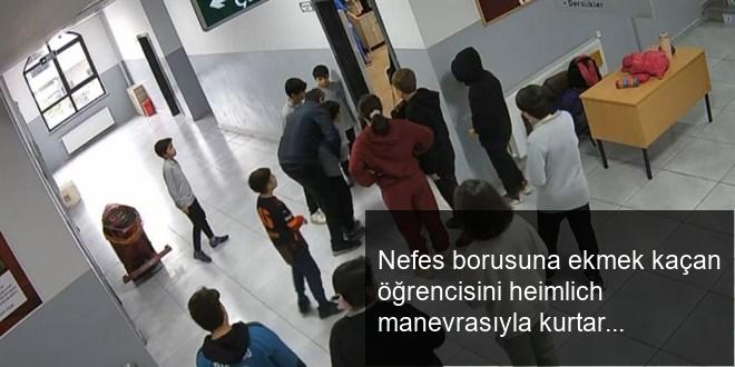 Herkesin birinci yardım eğitimi alması gerektiğini söyleyen öğretmeni Ökkeş İlker Siyer, “Çocuğumuz yemek yerken boğazına ekmek takılıyor. Sonra nöbetçi öğretmenimiz koridora yanlışsız ilerliyor. Ben de o sırada merdivenlerden tam öğretmenler odasına gerçek çıkarken durumu fark ettim. O sırada bize öğretilen birinci yardım bilgisini öğrencime uyguladım. Heimlich hareketi sonrası çocuğumuz rahatladı. Çocuğun nefes alamadığını, boğazını tuttuğunu fark edince heimlich hareketi uyguladım. Sonra ise sırtını süpürme halinde vurarak ekmeği çıkardım. Öğrencinin rahat bir formda nefes aldığını fark ettim. Öğrencimin nefes alması ve rahatlaması bizi çok keyifli etti. Olaydan sonra öğrencimiz bize teşekkür etti. Biz de çok keyifli olduk” dedi.