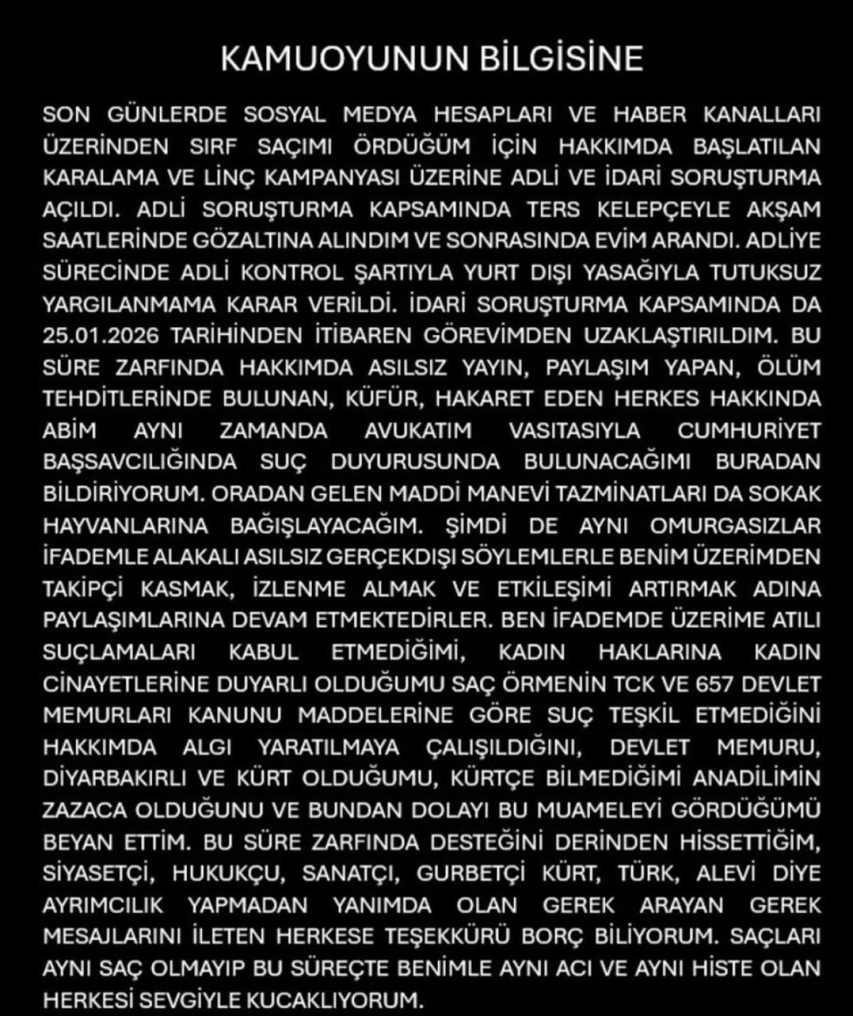 Açıklamada, kelam konusu paylaşımlar nedeniyle ilgili işçi hakkında isimli ve idari sürecin başlatıldığı, bahsin yakından takip edildiği söz edildi.