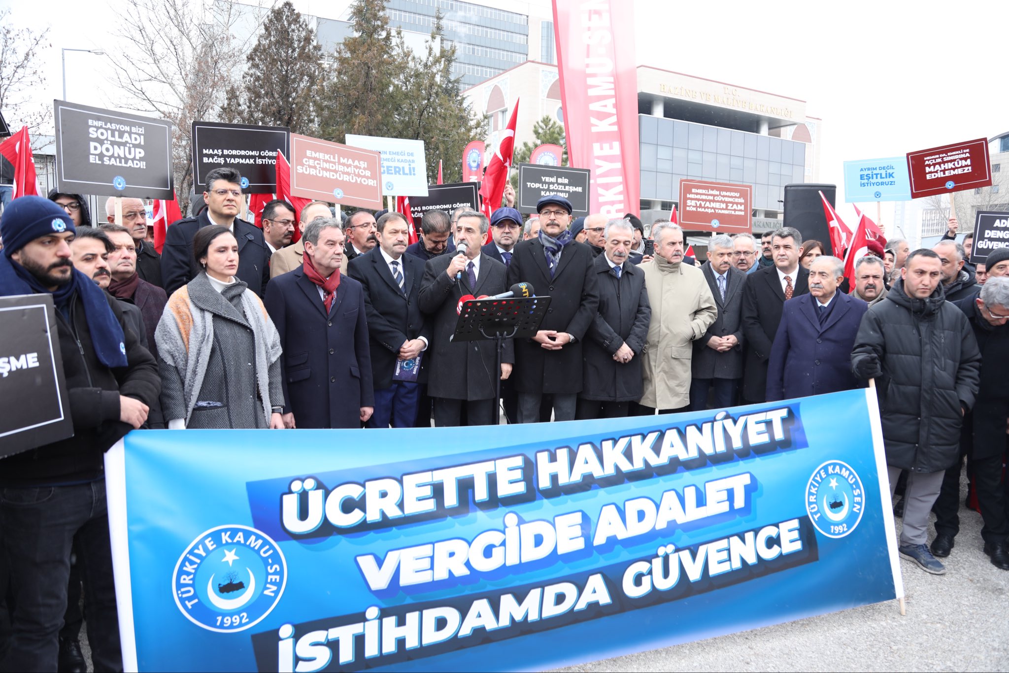 Türkiye Kamu-Sen Genel Lideri Önder Kahveci, Hazine ve Maliye Bakanlığı önünde yaptığı basın açıklamasında kamu çalışanlarının ve emeklilerin yaşadığı ekonomik zorlukları gündeme taşıdı. 2025 yılı enflasyon datalarının akabinde maaşların yetersiz kaldığını vurgulayan Kahveci, hükümete somut tahlil teklifleri sundu.