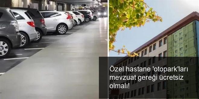 Çevre Şehircilik Bakanlığınca yayımlanan Otopark Yönetmeliği’nin 5’inci unsuruna nazaran, “Ağız diş sıhhati merkezleri ve hastanelerde, üniversitelerde otopark gereksiniminin bina bünyesinde yahut parselinde ya da bu yönetmelik kapsamında parselinde otopark teşkilinin mümkün olmaması halinde komşu parselde karşılanması zorunludur” tabiri yer alıyor. Yani kanunen hastanelerin vatandaşlara otopark hizmetini sunması şayet yoksa da ek alan alması gerekiyor. Bu durumda özel hastanelerin öne sundukları münasebetler de boşa düşüyor.