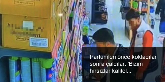 Şengil, güvenlik kamerasına baktığında iki kişinin parfümü çaldığını belirledi.