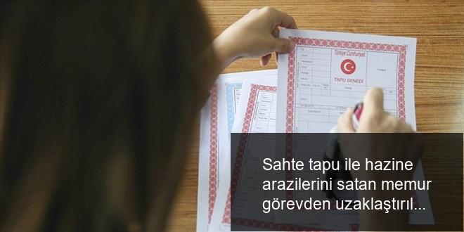 Sivas’ta bir memur, düzmece tapu hazırlayarak hazine topraklarını satışa çıkarınca usulsüzlüğün tespit edilmesi sonrası vazifesinden uzaklaştırılarak gözaltına alındı.