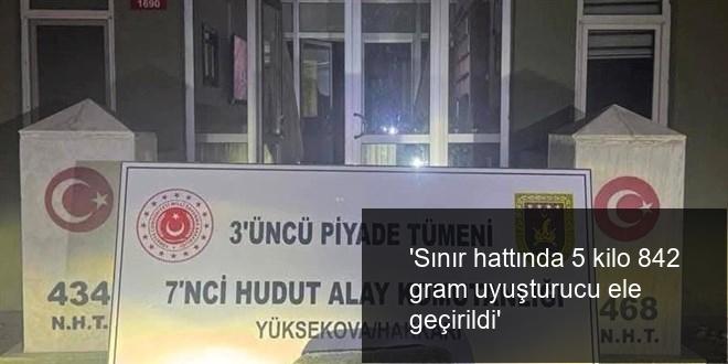 Bu kapsamda, hudut kartallarının, Hakkari hudut sınırında icra ettiği arama tarama faaliyetleri kapsamında 5 kilo 842 gram uyuşturucu husus ele geçirdiği belirtildi.