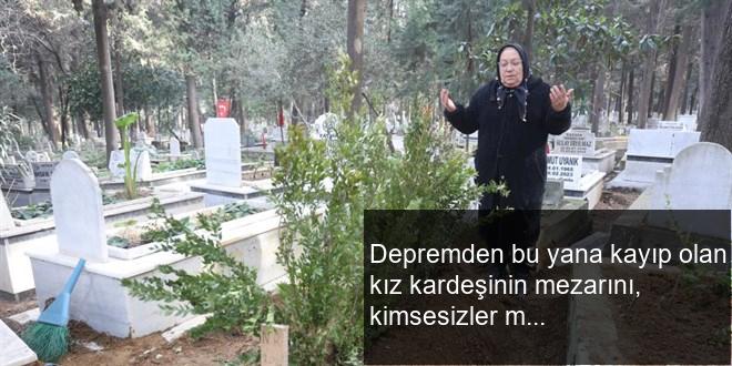 Depremden bu yana kayıp olan kız kardeşinin mezarını, kimsesizler mezarlığında buldu