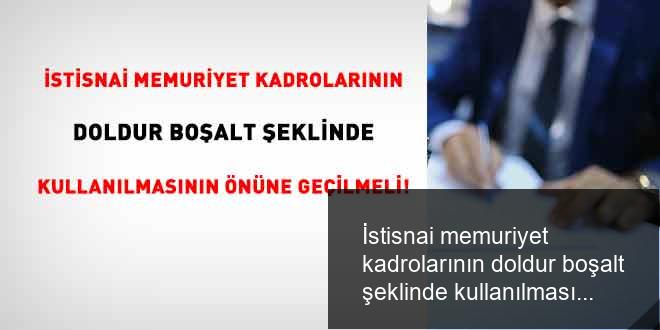 İstisnai memuriyet kadrolarının doldur boşalt şeklinde kullanılmasının önüne geçilmeli!
