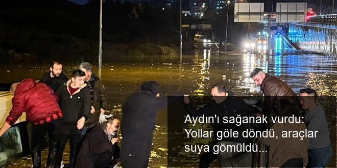 Aydın’ı sağanak vurdu: Yollar göle döndü, araçlar suya gömüldü