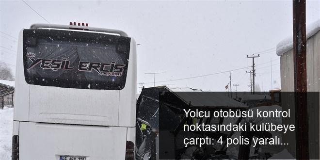 Yolcu otobüsü kontrol noktasındaki kulübeye çarptı: 4 polis yaralı